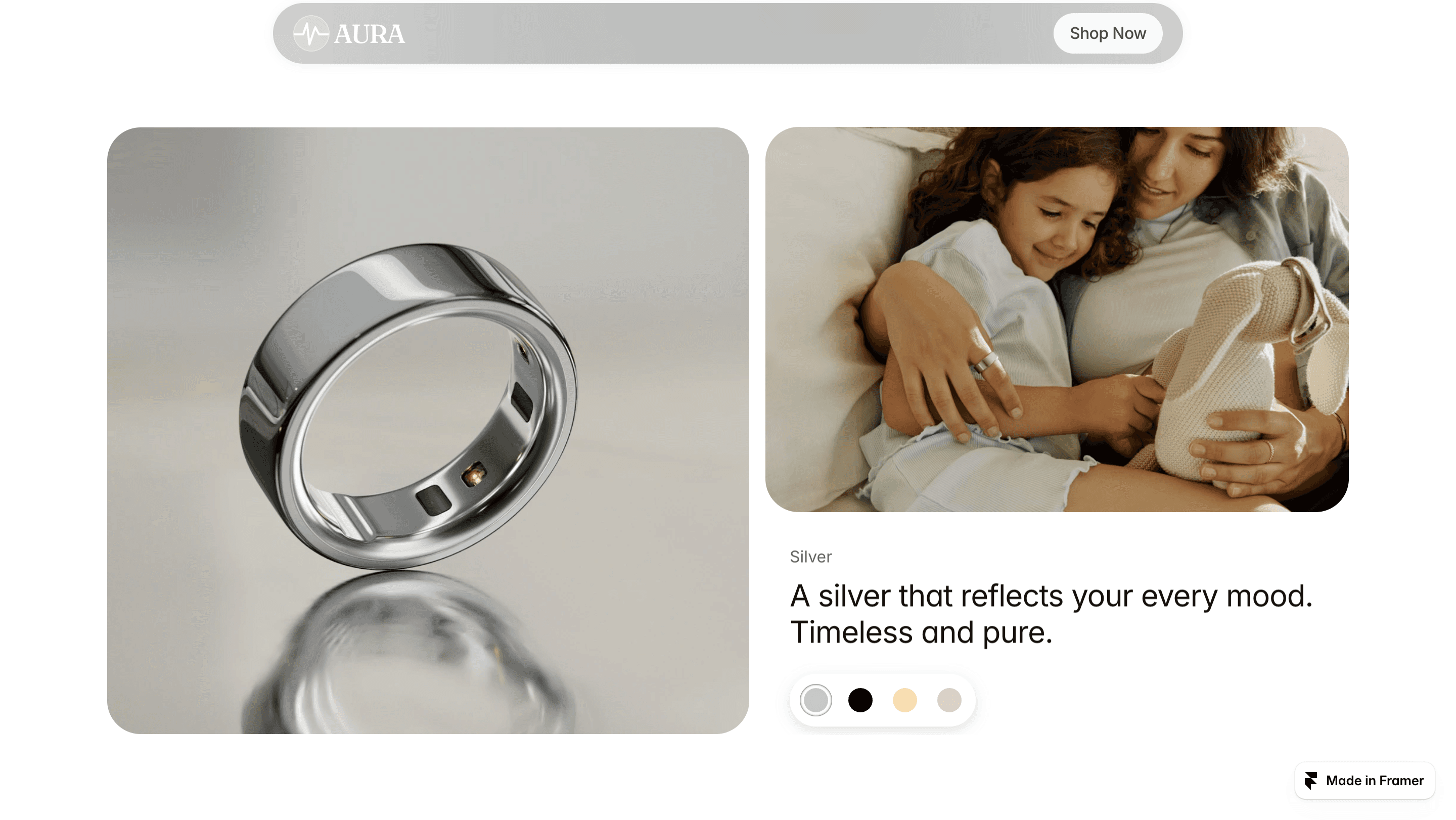 The final website presents Aura Ring as a refined and trustworthy wellness product. The clean visual structure and calm design language help communicate the product’s purpose clearly while creating an engaging and polished first impression.