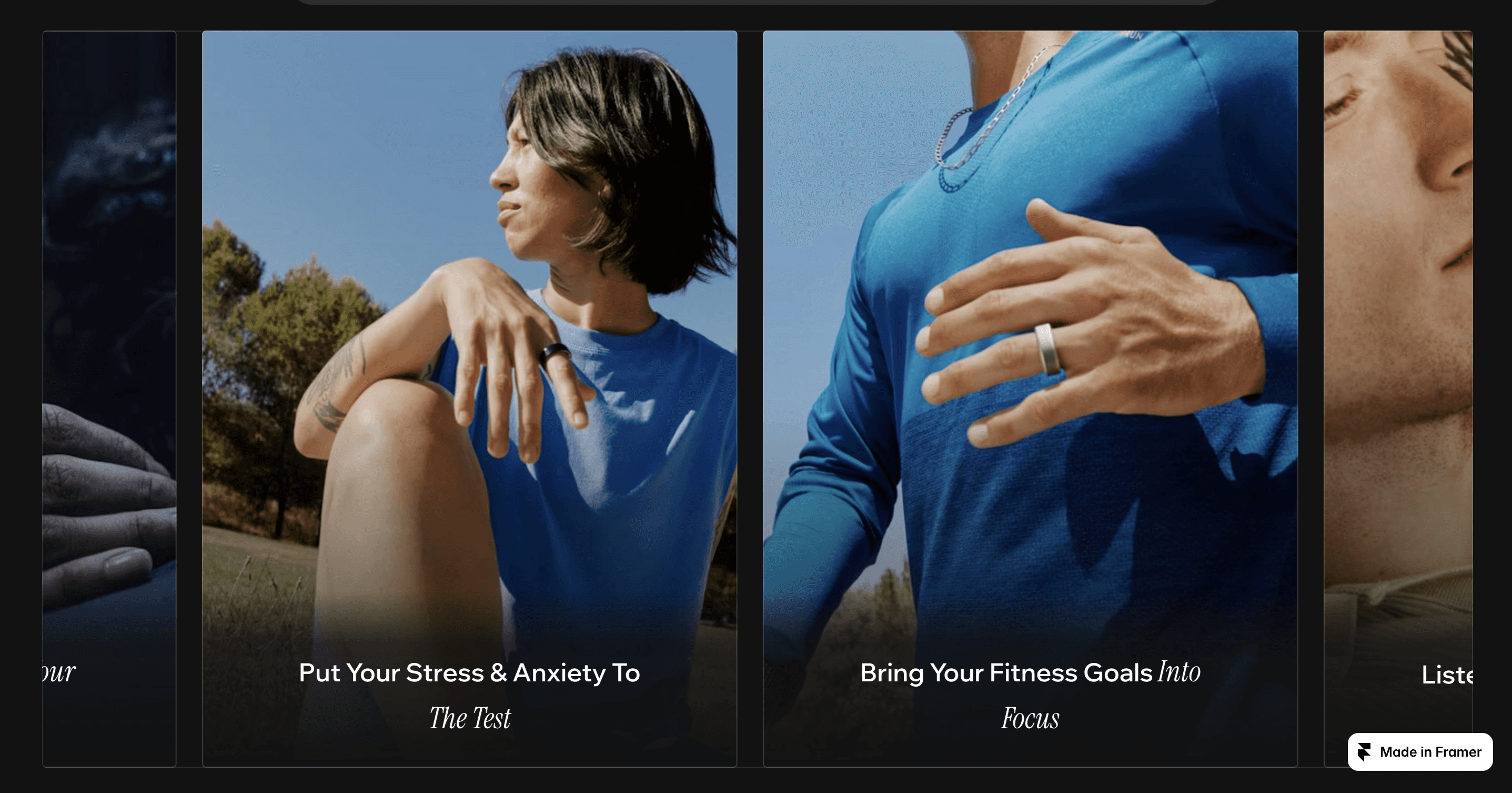The design emphasizes minimalism, balance, and clarity. Soft gradients, spacious layouts, and refined typography were used to create a premium and calming aesthetic. The layout highlights product features in a clear, easy-to-scan flow while maintaining a strong visual focus on the ring itself.