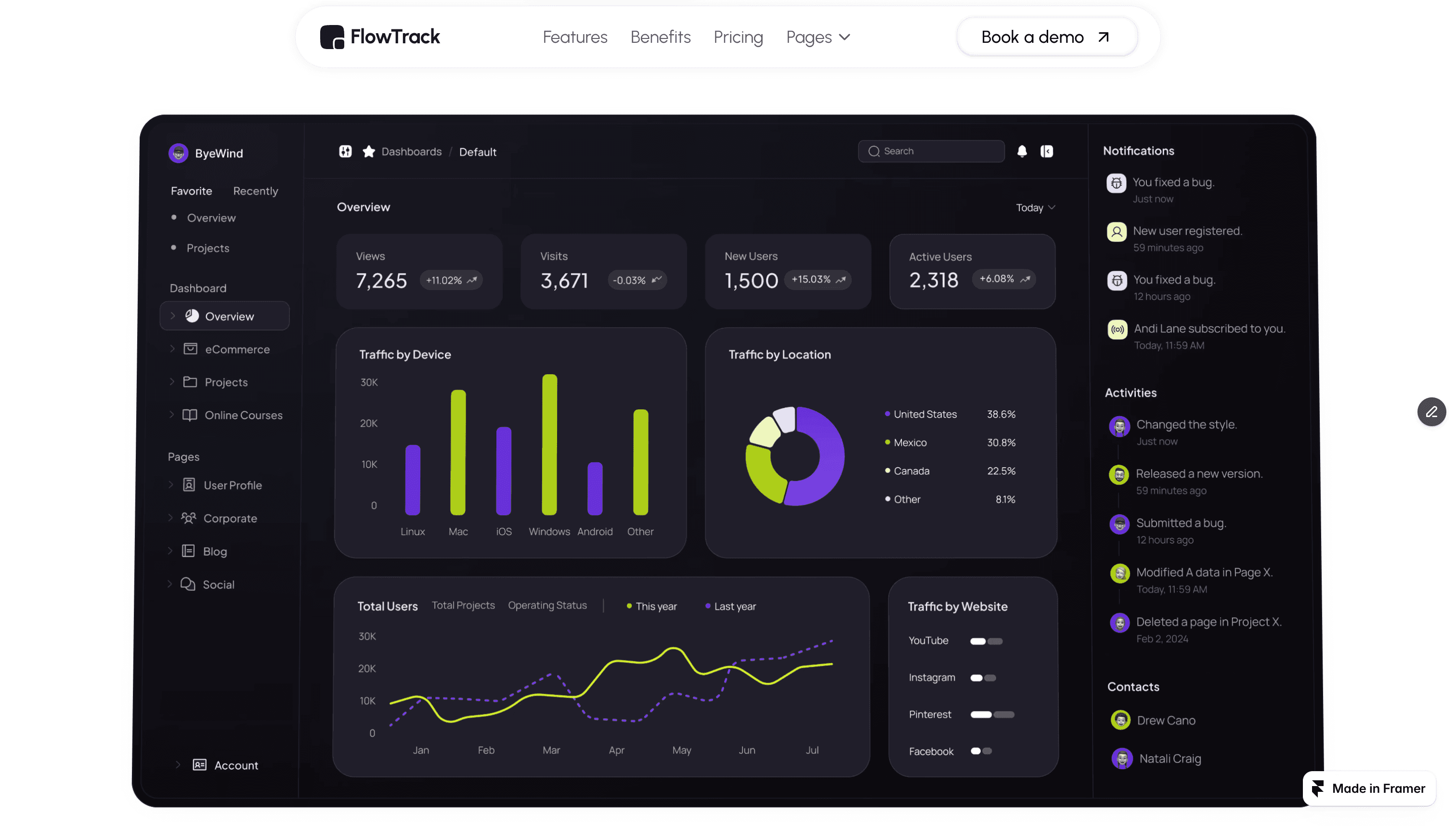 FlowTrack is a concept website designed to present a clean, modern, and conversion-focused landing page for an analytics SaaS product.