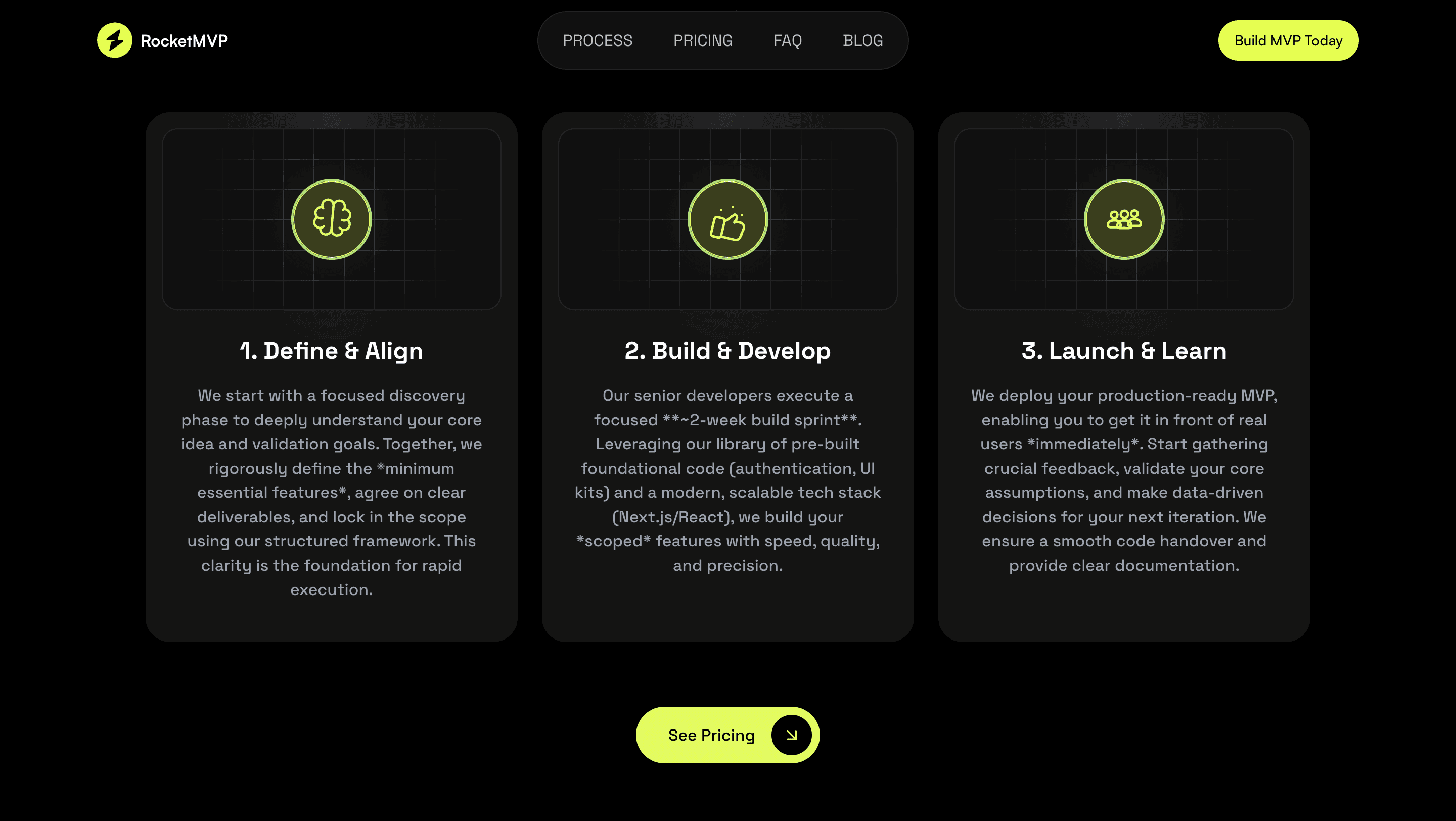 RocketMVP is a high-impact landing website crafted to showcase the agency’s fast, battle-tested MVP development process. The design focuses on clarity, credibility, and strong visual storytelling to convert visitors into leads.